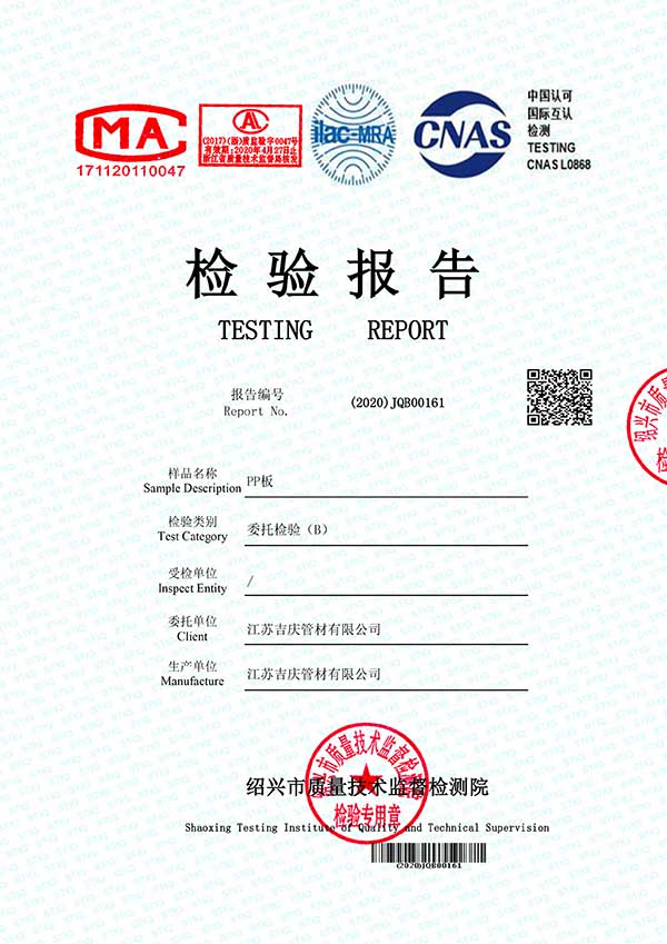 江蘇吉慶管材集團(tuán)有限公司創(chuàng)辦于2010年2月,是pp管,pp管材,pp管件,pp風(fēng)管,frpp管,frpp管材,pph管,pph管材,pph管件,pph風(fēng)管,pvdf管,pvdf管材,pp儲罐,pp板材的專業(yè)化生產(chǎn)企業(yè)。公司占地30余畝,擁有各類資產(chǎn)8000余萬元,專業(yè)技術(shù)人員20余人,管材生產(chǎn)線10條,管件生產(chǎn)線11條,具備了10000余噸各類防腐塑料制品的年生產(chǎn)能力。公司通過了ISO9001-2000質(zhì)量體系認(rèn)證,同時被評為AAA信用單位,2018年公司被評為高新技術(shù)企業(yè),此后陸續(xù)取得安全生產(chǎn)管理證書等榮譽(yù)。公司位于水上花園城市----江蘇省揚中市八橋鎮(zhèn)永福路18號,交通便捷,可直接導(dǎo)航至公司園區(qū)內(nèi)。公司全體員工將以高度的敬業(yè)精神,嚴(yán)格的質(zhì)量控制理念和科學(xué)的管理方法,及時周到的服務(wù),竭力為我國塑料管道在各領(lǐng)域的推廣和應(yīng)用作出更大的貢獻(xiàn)!